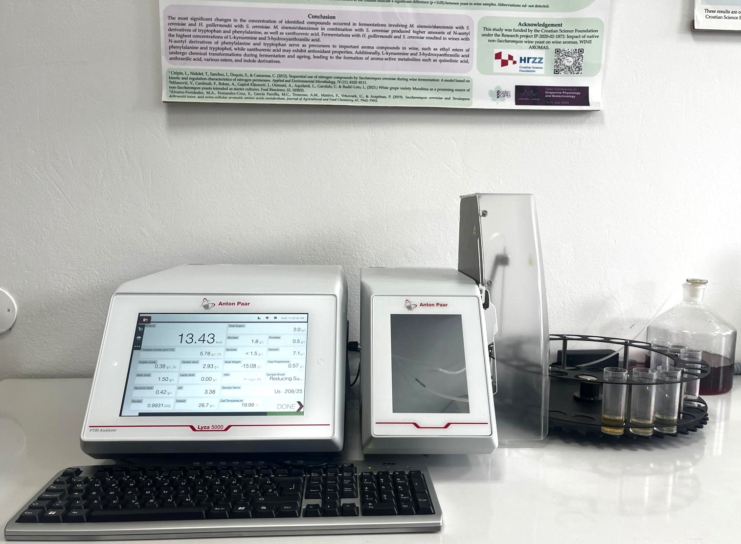 The laboratory uses more than 30 physico-chemical methods in its work, 14 of which are accredited according to the HRN EN ISO/IEC 17025 standard. It continuously updates existing methods and develops new ones, introduces modern laboratory equipment and instruments, and keeps up with changes in winemaking legislation.