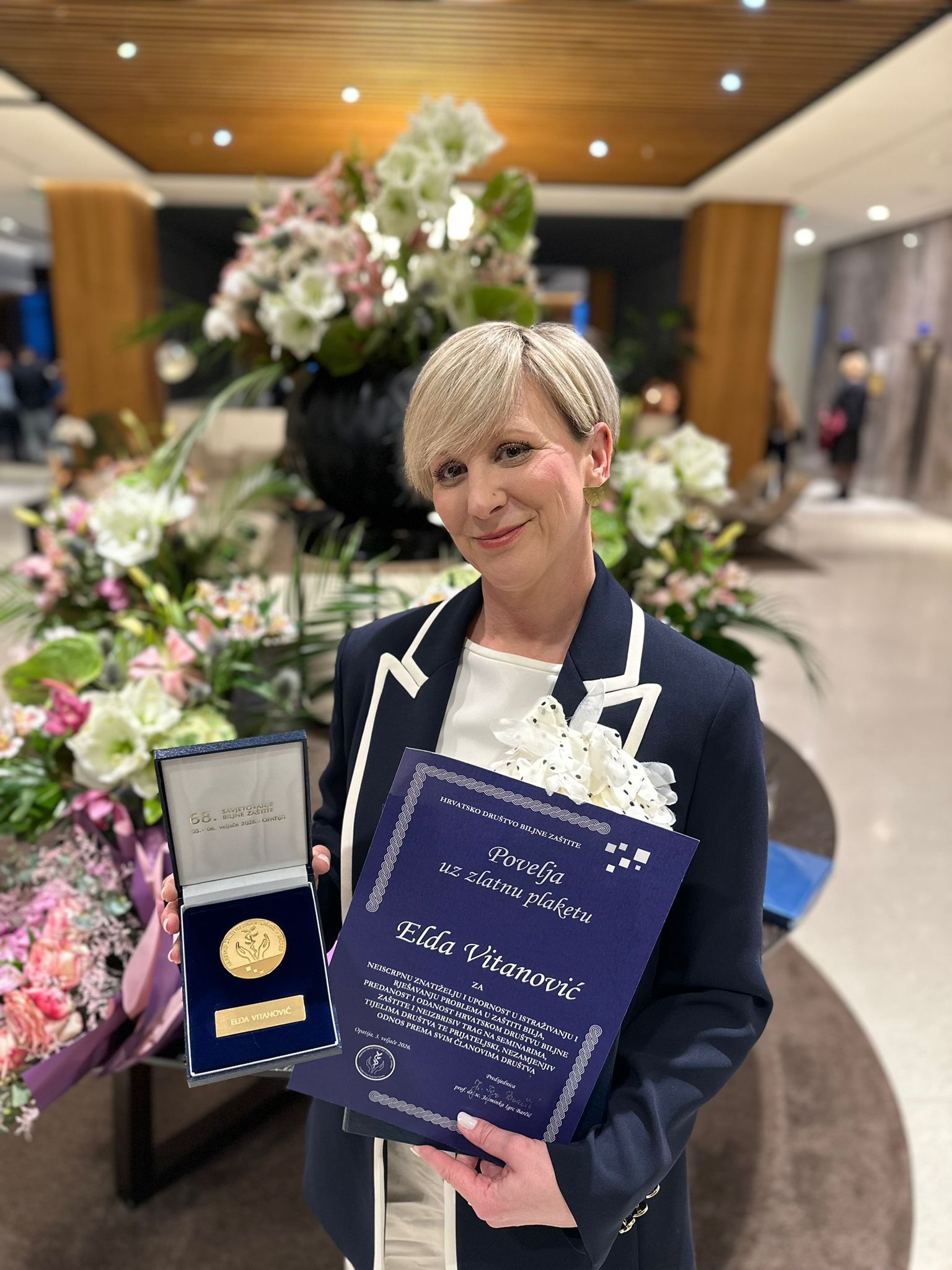 Na 68. Savjetovanju biljne zaštite u Opatiji predsjednica Hrvatskog društva biljne zaštite, prof. dr. sc. Jasminka Igrc Barčić, uručila je Zlatnu plaketu i Povelju uz Zlatnu plaketu našoj djelatnici dr. sc. Eldi Vitanović za neiscrpnu znatiželju i upornost u istraživanju i rješavanju problema u zaštiti bilja, predanost i odanost Hrvatskom društvu biljne zaštite i neizbrisiv trag na seminarima, tijelima Društva te prijateljski, nezamjenjiv odnos prema svim članovima Društva.